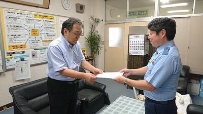 武南警察署の方がお見えになり、校長先生に委嘱状をお渡しくださいました。