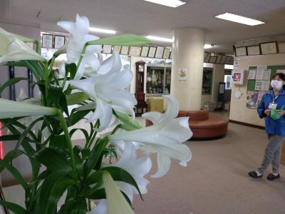 学校評議員の矢作さんが学校にテッポウユリを持ってきて下さいました。臨時休校のまま新学期が始まった不安な私たちを陣中見舞いしていただいたような嬉しい気持ちになりました。