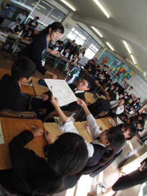 英語科廣瀬教諭とALTのタッグで授業がテンポよく進んでいきます。生徒は終始楽しく積極的でした。