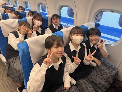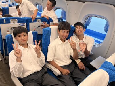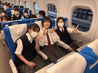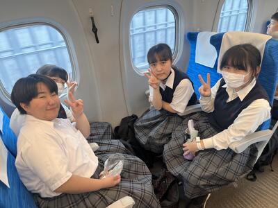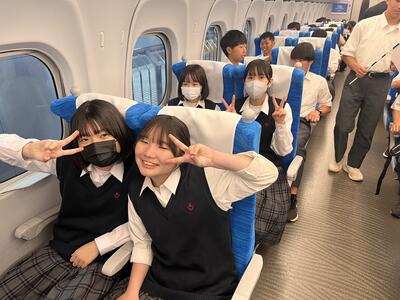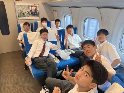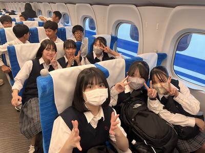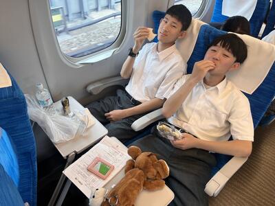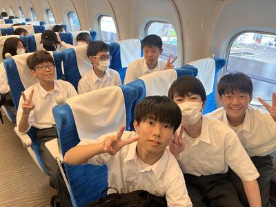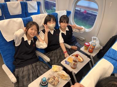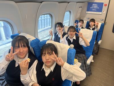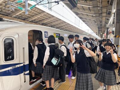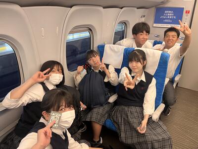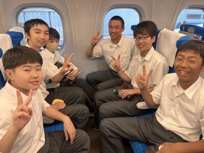 東京駅の団体集合場所で出発式をしています。これから新幹線に乗車です。