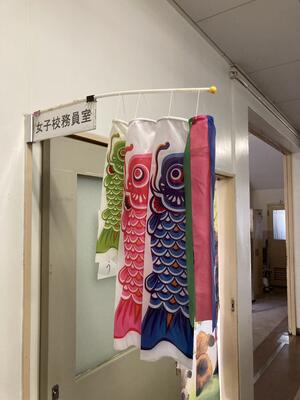 校内のとある場所には、こいのぼり🎏が飾られています。