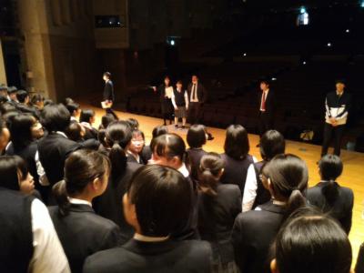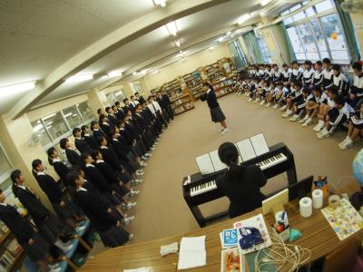 | 合唱コンクールまであと僅か。こちらは、2年生と3年生が互いの合唱を聴きあっています。このとき普段の練習とはちがう何かが生徒の心に舞い降ります。またひとつクラスが一つになっていく。さあ、最高の舞台へ! |