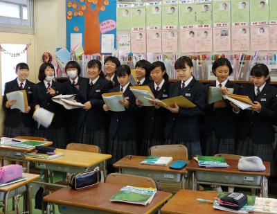 明日11月29日(金)は合唱コンクールです。前日をどう過ごすか、どのクラスもそれぞれの考えで気持ちをまとめ上げていきます。 「1年間でこの時期が一番好き」とおっしゃるのが、給食配膳員の小山さん。 「仕事をしながら、生徒さんの歌が廊下を伝って毎日響いてくるから。幸せな気持ちになれる。」そんなことを話されていました。 当日の合唱を一度も聞くことができない方が本校にはいます。その方々がみんな、練習の生徒の歌声に耳を傾け、幸せを味わっています。あなた方は確かに人の心を動かしています。ホントに素敵な生徒たちです。後でどんなに録画したものを聞いたとしても、あの本番の感動は生でしか味わえません。だからこそ、今日の練習を耳にしながら仕事をされる本校の職員の一部は、あしたの分も想像しながら生徒の歌に心を重ねてくれています。 あしたは天気になりますように!
