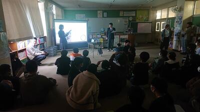 生徒会が準備した中学校クイズや神根中の紹介を興味津々な様子で見てくれました。