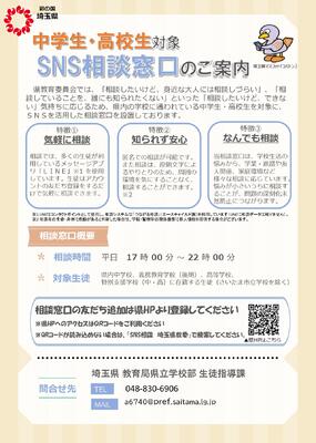 埼玉県教育委員会が行っているSNSによる相談窓口のお知らせです。