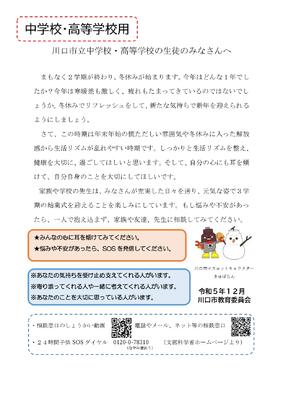 川口市教育委員会からのメッセージです。