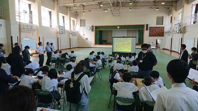 午前中の公開授業に続いて、午後は体育館で焦点授業を行いました。