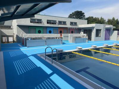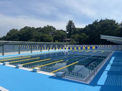 長かったプールの工事がようやく完了し、授業や部活で使えるようになりました。