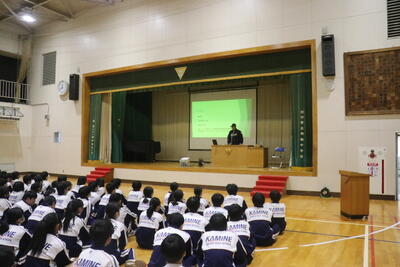夢と豊かな心をはぐくむ講演会【2,3学年】 投稿: 神根中職員 (13:19) カテゴリー: 今日の出来事 12月16日(火)、埼玉西武ライオンズでご活躍された高橋朋己投手をお招きして、『夢と豊かな心をはぐくむ講演会』を行いました。 夢を叶えてプロ野球選手になった高橋選手のお話を聞いて、自分の将来について見つめ直す良い時間になりました。講演会の最後には、代表者数名が高橋選手とキャッチボールを行い大いに盛り上がり、貴重で思い出深い経験になりました。 Tweet -